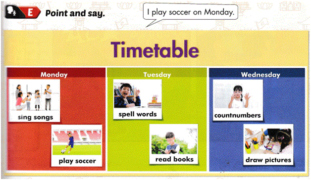 (Các buổi học trong tuần.)