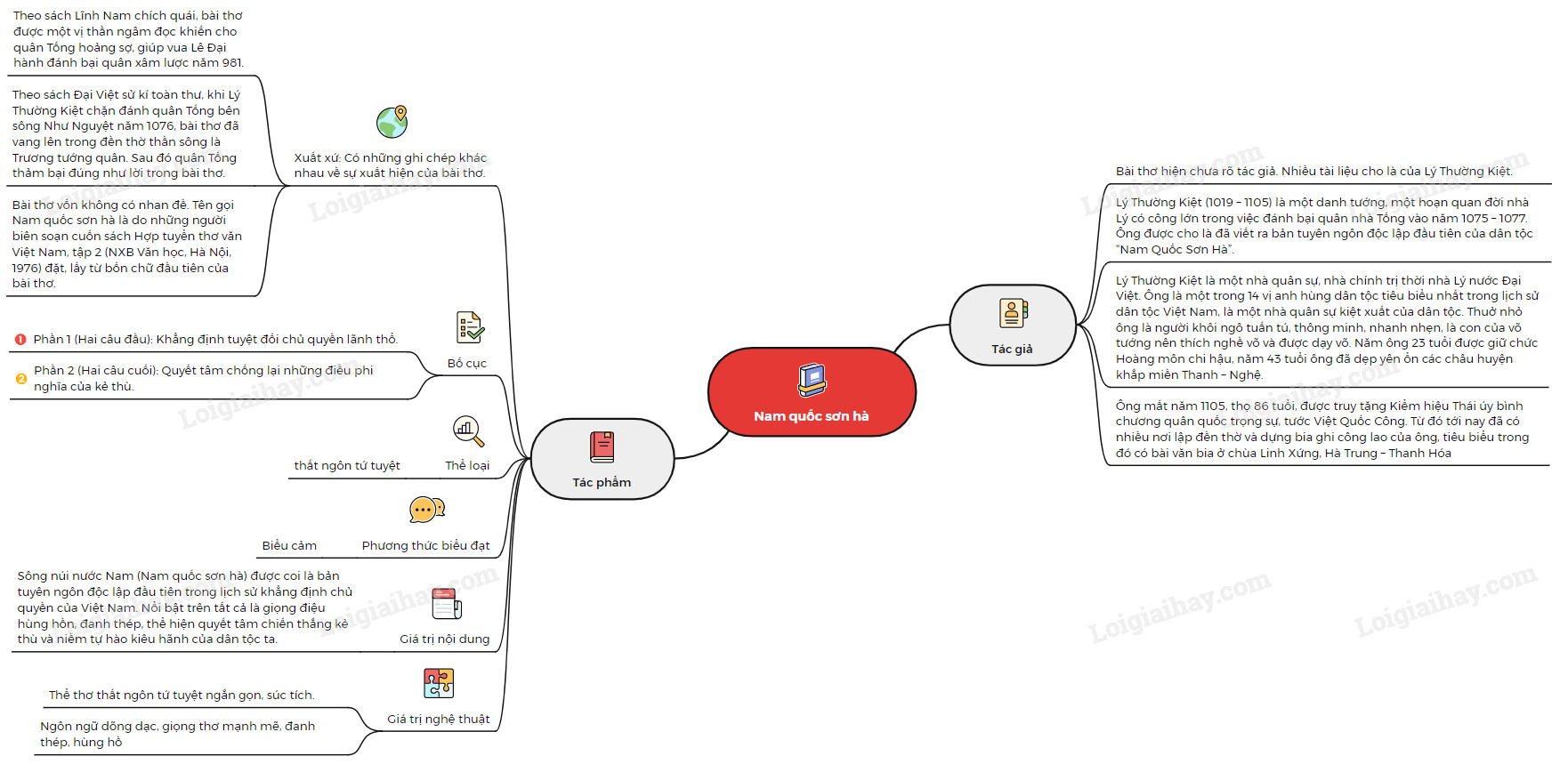 Sơ đồ tư duy bài thơ Nam quốc sơn hà: