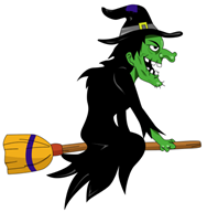 Who has dark magic powers and flies on a broom?