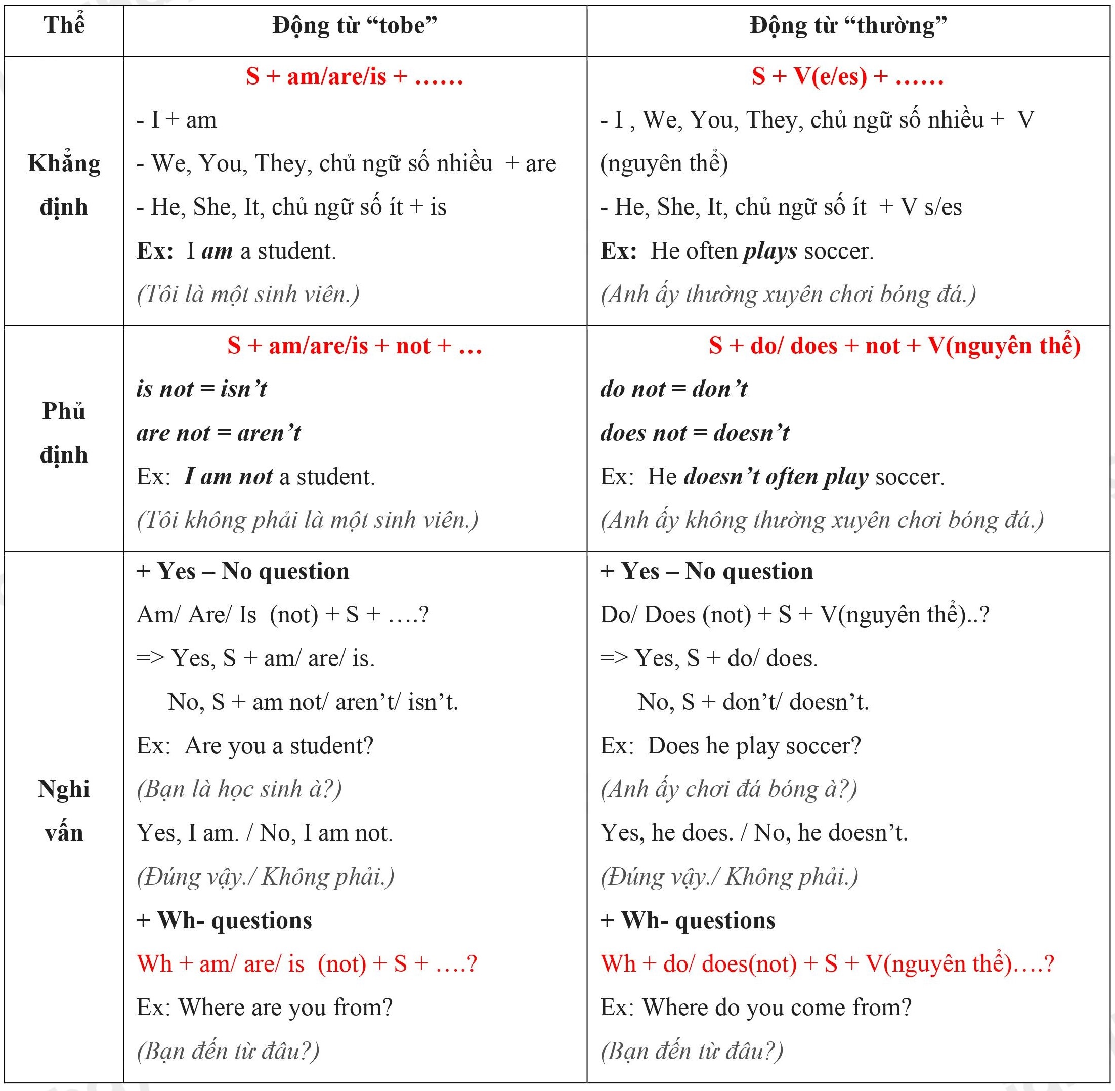III. Công thức thì hiện tại đơn: