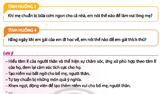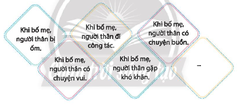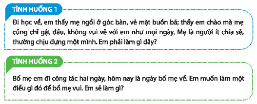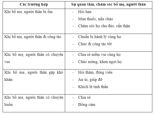 Thể hiện sự quan tâm, chăm sóc bố mẹ, người thân và chia sẻ kết quả thực hiện trong các trường hợp sau: