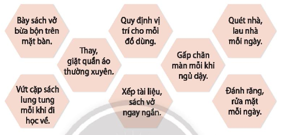 Em đã thực hiện thường xuyên những việc làm nào để rèn luyện thói quen ngăn nắp, gọn gàng, sạch sẽ trong học tập và cuộc sống?