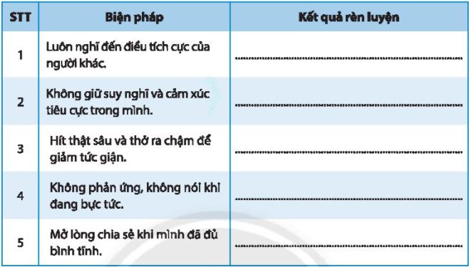 Chia sẻ kết quả của em trong việc rèn luyện những biện pháp điều chỉnh cảm xúc của bản thân.