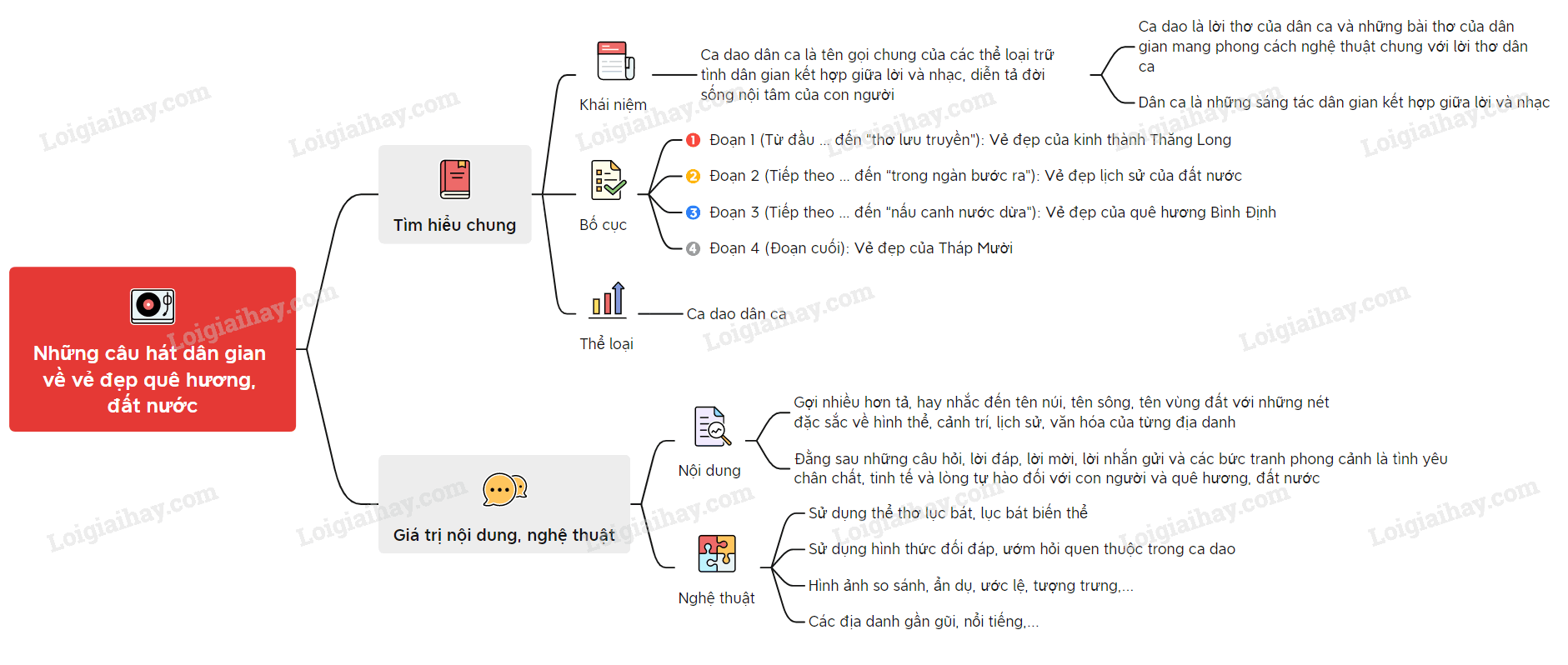 Sơ đồ tư duy về bài ca dao “Những câu hát dân gian về vẻ đẹp quê hương, đất nước”: