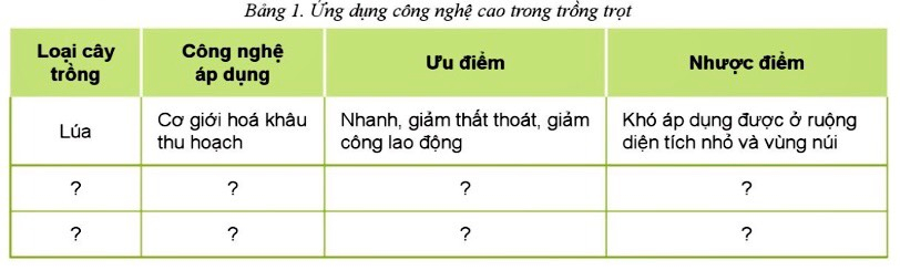 2. Tìm hiểu về một số ứng dụng công nghệ cao trong trồng trọt ở địa phương em theo mẫu Bảng 1