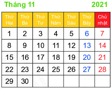 Ngày 20 tháng 11 là thứ mấy?