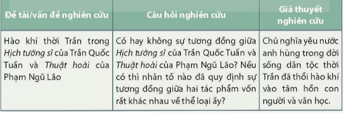 – Câu hỏi nghiên cứu: Có hay không sự tương đồng giữa Hịch tướng sĩ của Trần Quốc Tuấn và Thuật hoài của Phạm Ngũ Lão? Nếu có thì nhân tố nào đã quy định sự tương đồng giữa hai tác phẩm vốn rất khác nhau về thể loại ấy?