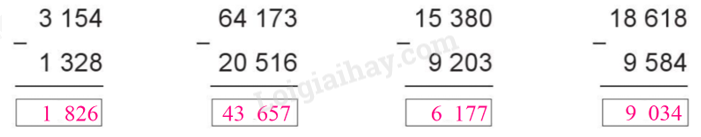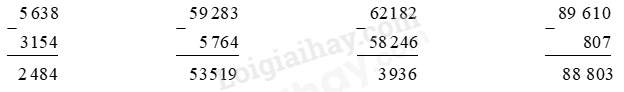 Thực hiện phép trừ các số lần lượt từ phải sang trái.