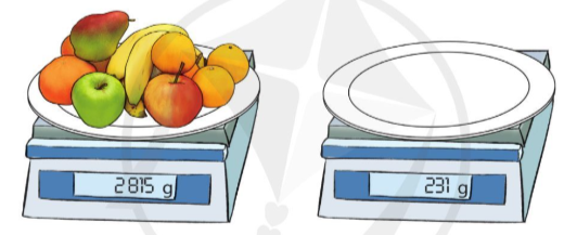 Cân nặng của trái cây = Cân nặng của đĩa trái cây – cân nặng của chiếc đĩa