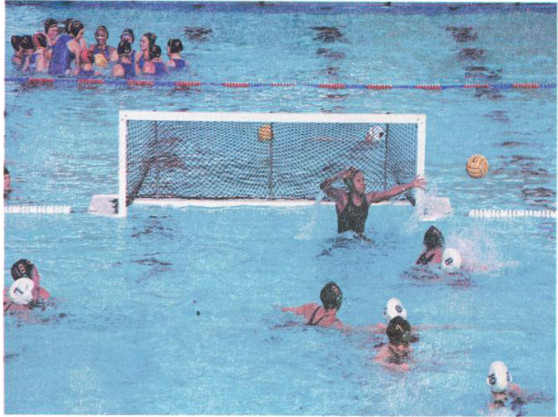 Like football, the game begins with the ball in the centre of the pool and both teams sprint for it from their own goal lines. The ball can be advanced by passing with one hand or swimming with the head above the water and the ball between the arms so it rides on the wave created by the swimmer’s head. No player except the goalie can hold the ball with both hands.