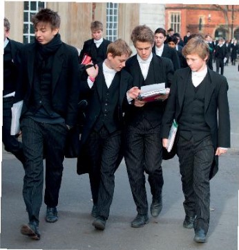 Eton College là một trong những trường tư thục lâu đời nhất và đắt nhất nước Anh và có vẻ như học sinh đang mặc những bộ đồng phục lâu đời nhất, đắt tiền nhất của nước Anh! Không thực tế lắm! Họ đang đi đến lớp học. Đây là trường nội trú – học sinh học tập, ăn ngủ tại đây.