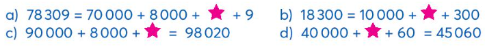 a) 78 309 = 70 000 + 8 000 + 300 + 9