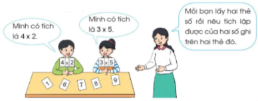 Chọn 2 thẻ số có trong hình rồi lập tích của hai số đó.
