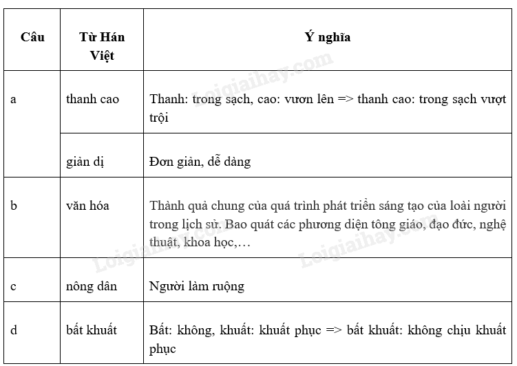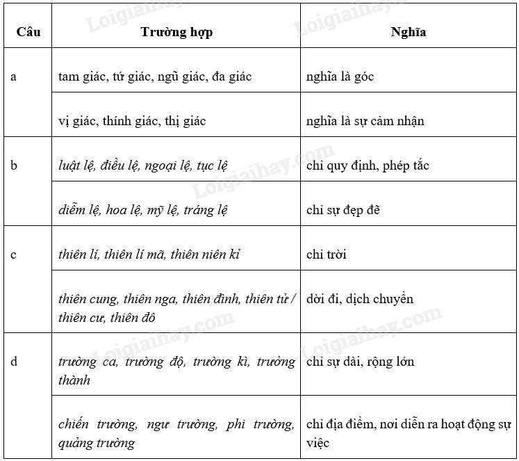 Tìm nghĩa của các yếu tố Hán Việt để phân biệt.