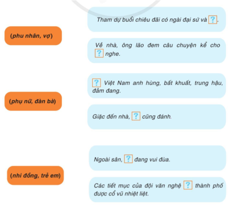 Đọc kỹ câu để điền từ Hán Việt hoặc thuần Việt phù hợp.