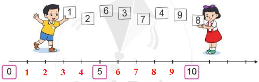 a) Xếp các thẻ số vào vị trí thích hợp dưới mỗi vạch của tia số:
