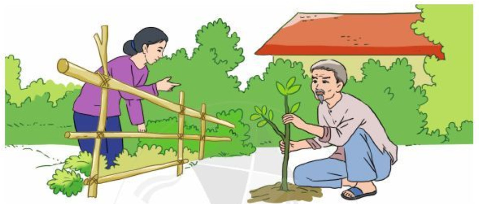 a. Ông cụ lúi húi ngoài vườn để trồng cây na nhỏ.