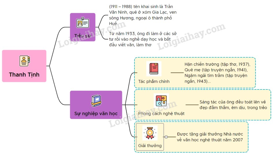 Sơ đồ tư duy về tác giả Thanh Tịnh: