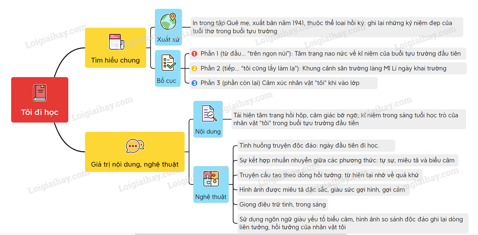 Sơ đồ tư duy về tác phẩm “Tôi đi học”: