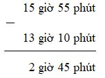 Vậy:      15 giờ 55 phút – 13 giờ 10 phút = 2 giờ 45 phút.