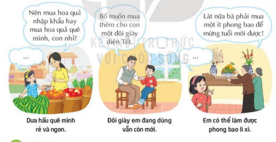 + Tình huống 2: em sẽ cảm ơn bố và nói với bố rằng đôi giày mình đang đi vẫn còn mới, bố không cần phải mua thêm để diện Tết.