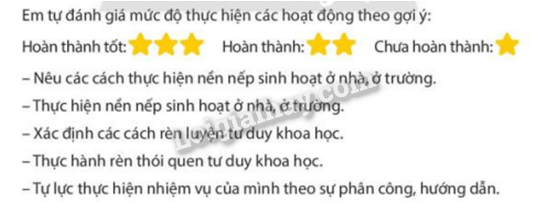 Em tự đánh giá mức độ thực hiện các hoạt động theo gợi ý:
