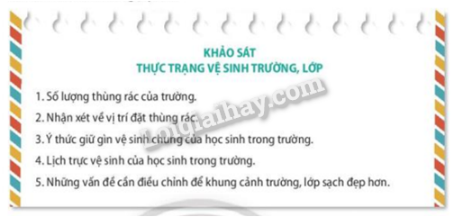 3. Báo cáo kết quả tìm hiểu thực trạng vệ sinh trường, lớp.