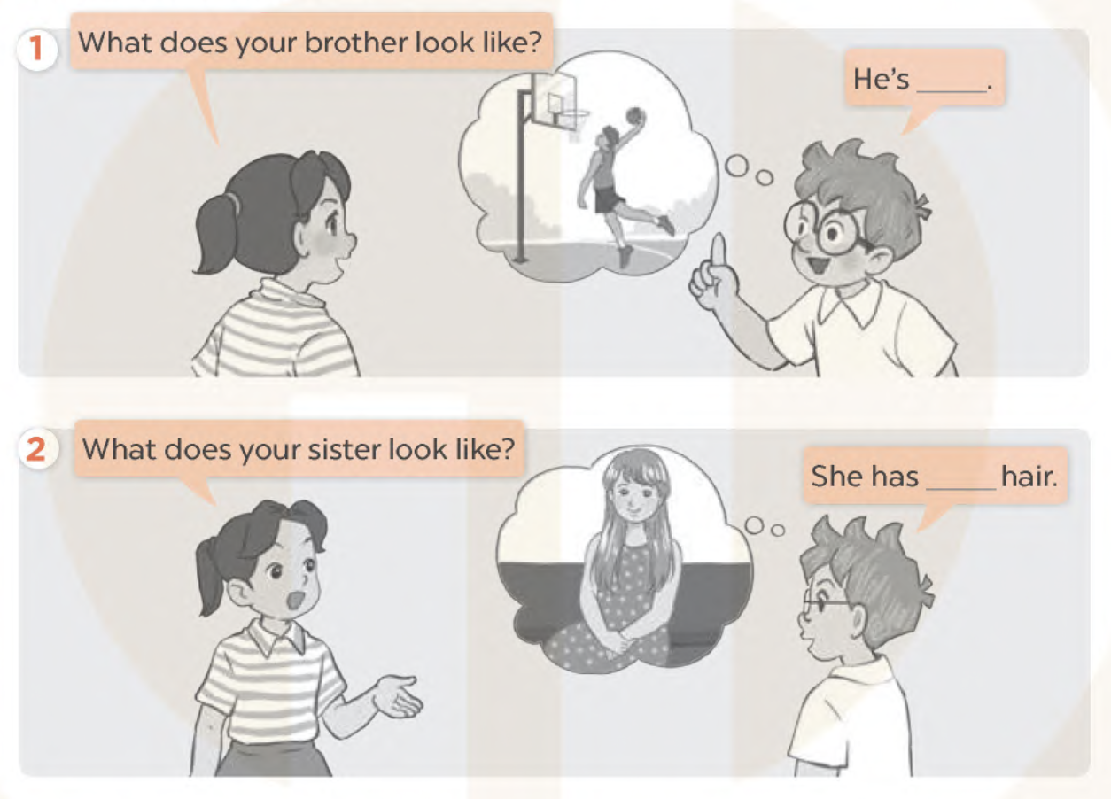 A: No, she doesn’t. She has (3)___________ hair. She (4)__________ big and (5)_______ eyes.