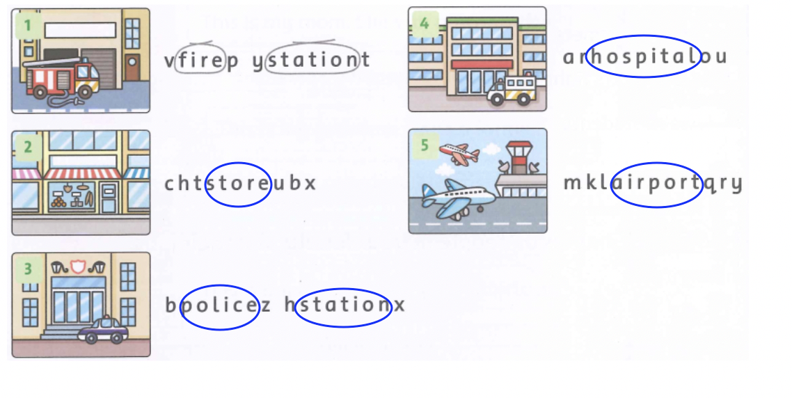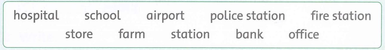 (Khoanh tròn những nơi gia đình bạn làm việc.)