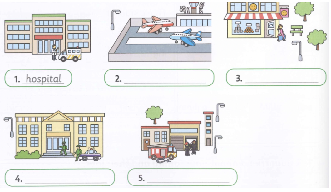 6. She works in a hospital. (Cô ấy làm việc trong bệnh viện.)