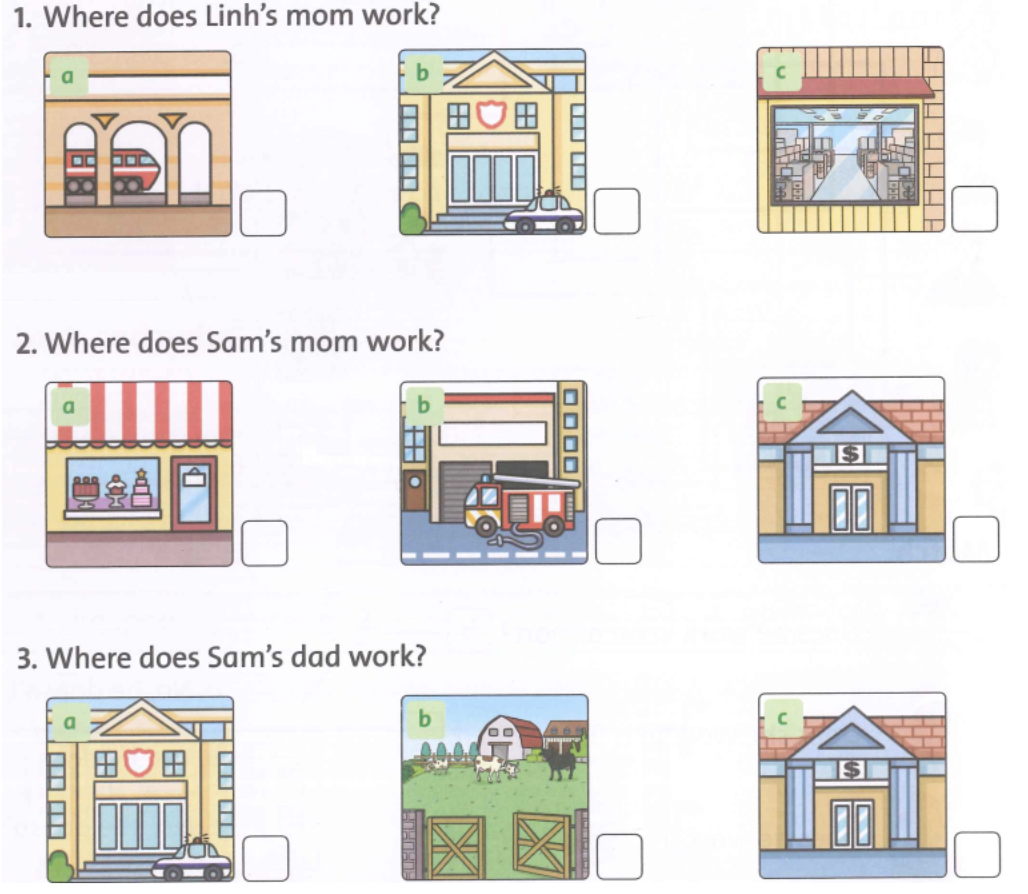 Linh: Mẹ của bạn làm việc ở đâu, Sam?