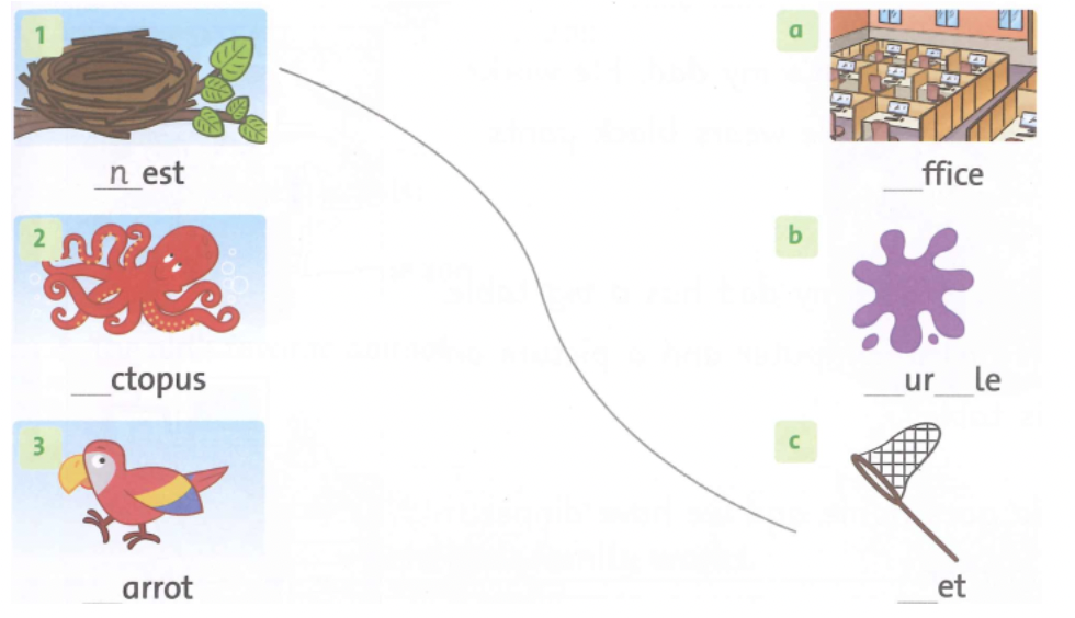 Find and circle the words. Find and circle the words. Follow the maze and write. Match.