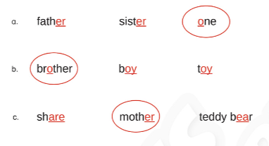 c. /eə//eə/      share (chia sẻ)               mother (mẹ)           teddy bear (gấu bông)