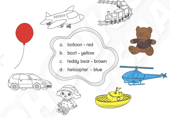 d. helicopter – blue (máy bay trực thăng – màu xanh dương)