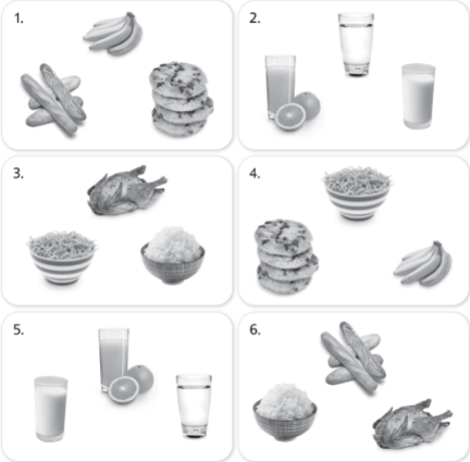 (Tôi thích chuối, bánh mì, thịt gà, nước cam ép.)