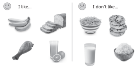 (Vẽ. Thực phẩm yêu thích của em là gì? Nói. Tô màu.)