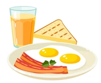 (Tôi thích nước cam ép, bánh mì kẹp, trứng và xúc xích.)