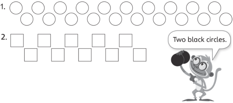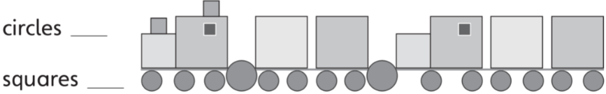 (Đếm và nói. Có bao nhiêu hình tròn? Có bao nhiêu hình vuông?)