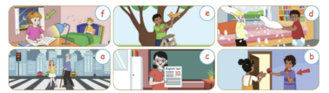 (Tôi đọc sách cho người khuyết tật. Tôi tặng đồ dùng học tập cho người khuyết tật.)