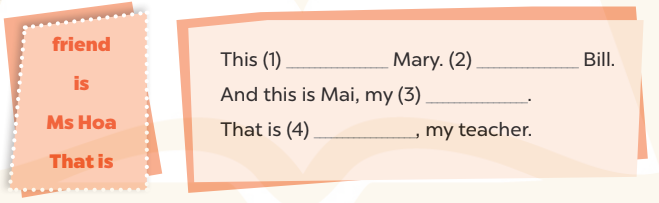 This is Mary. That is Bill. And this is Mai, my friend. That is Ms Hoa, my teacher.