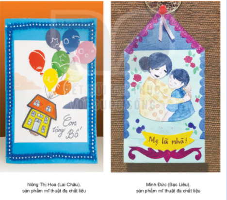 Trong 2 sản phẩm trên, ngôi nhà được sử dụng để lồng vào mảnh vải, để làm thiệp tặng bố, và trong sản phẩm tặng mẹ, ngôi nhà được sử dụng giống như 1 tấm thiệp, cắt thành hình ngôi nhà, trong là hình ảnh 2 mẹ con.