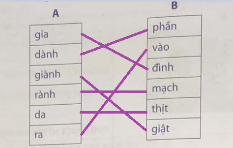 Nối tiếng ở cột A với tiếng thích hợp ở cột B để tạo thành từ có nghĩa: