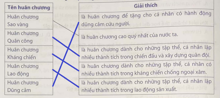 Nổi tên huân chương với phần giải thích cho phù hợp (theo mẫu).