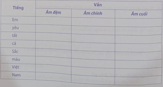 Chép vần của từng tiếng trong hai câu thơ sau vào mô hình cấu tạo vần: