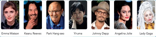 1. Keanu Reeves  2. Emma Watson 3. Lady Gaga