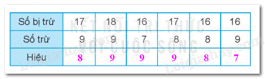 16 – 7 = ….                             17 – 8 = ….                             18 -9 = ….