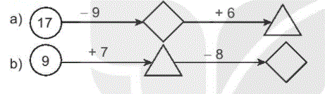 Tính nhẩm kết quả các phép tính theo chiều mũi tên rồi điền số thích hợp vào ô trống.