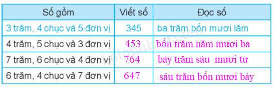 Để đọc các số có ba chữ số, ta đọc lần lượt từ hàng trăm, hàng chục, hàng đơn vị.