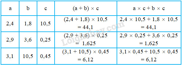 b) Áp dụng công thức: \((a + b) \times c = a \times c + b \times c\).