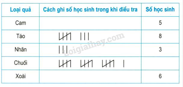 Quan sát bảng đã cho để biết cách ghi số học sinh trong khi điều tra, từ đó vẽ biểu đồ hình cột tương ứng.